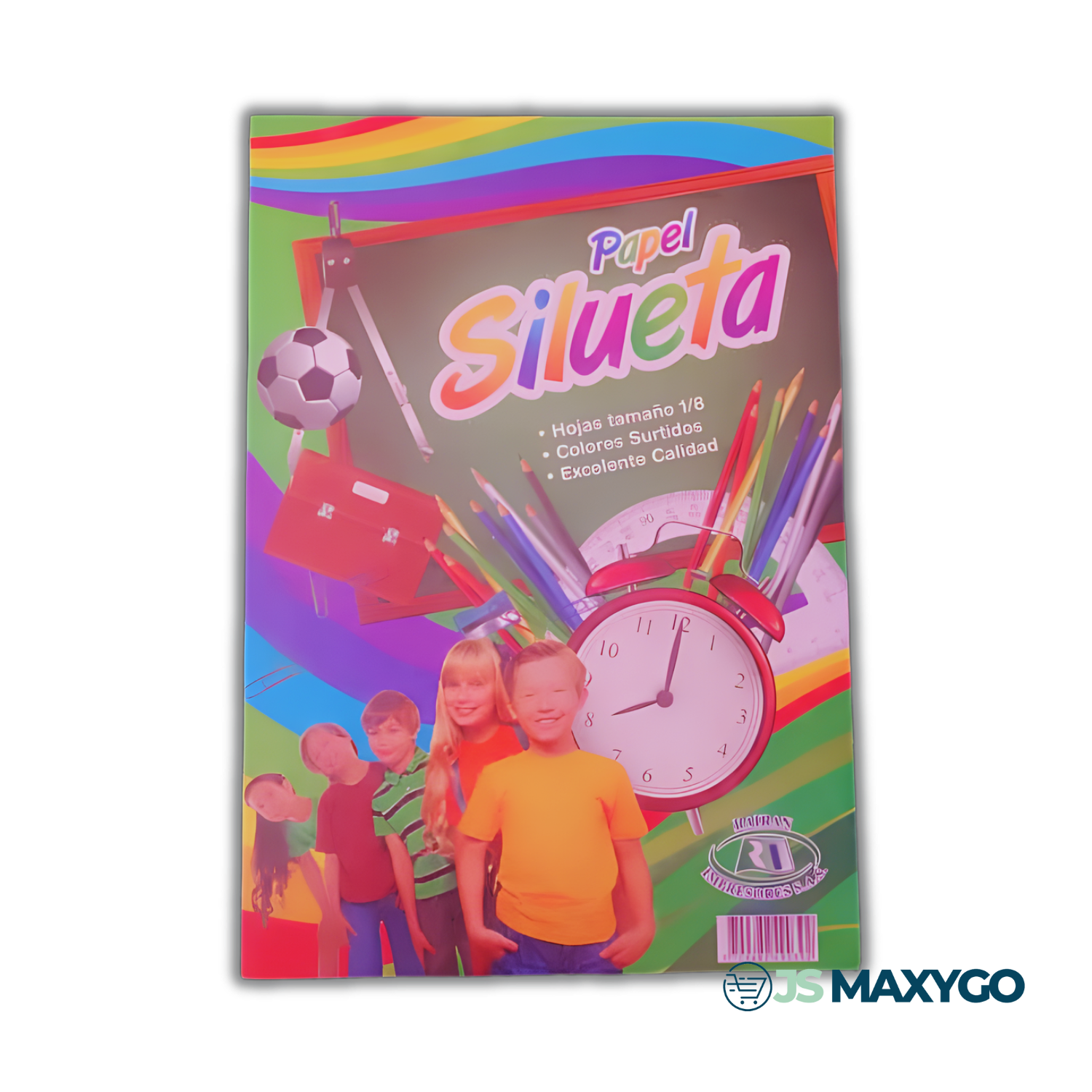 Paquete de 10 hojas de papel silueta tamaño 1/8 en colores surtidos. Ideal para trabajos escolares, manualidades y proyectos creativos. Colores vivos y fácil de recortar. 🎨✂️