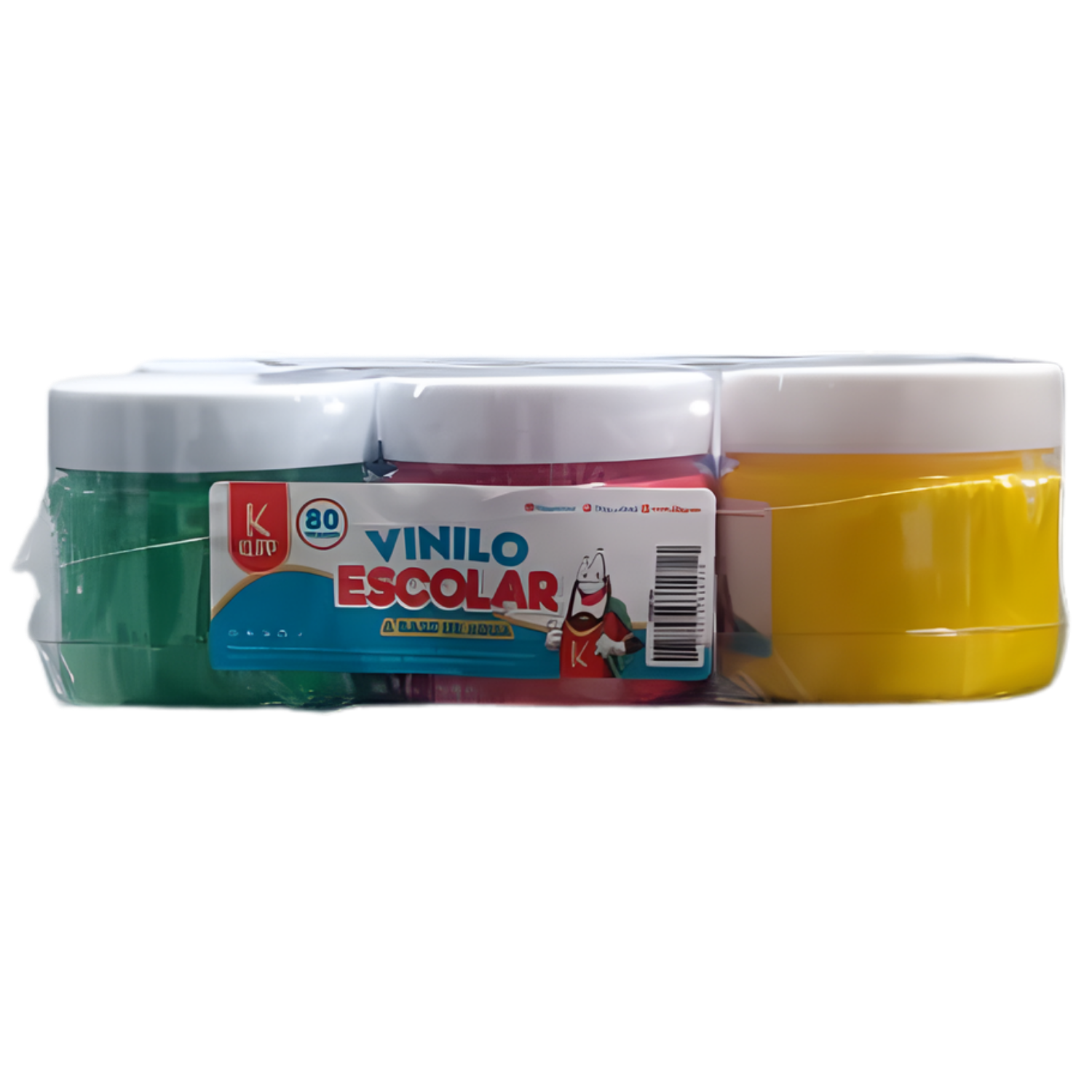 Vinilo KLIPP de 80 g, ideal para trabajos escolares, manualidades y proyectos creativos. Ofrece excelente adherencia, secado uniforme y colores vivos. Presentación surtida en paquete por 6 unidades, perfecto para actividades artísticas y uso escolar.